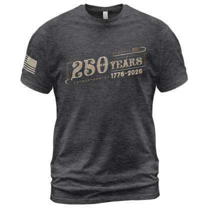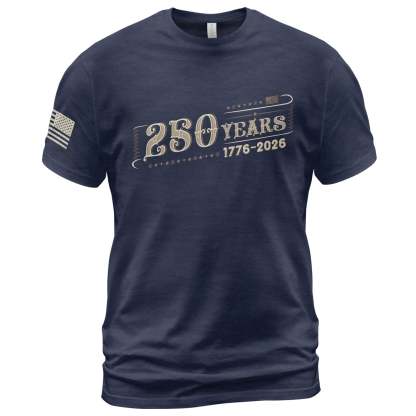 Celebrate a historic milestone with this 250 Years Independence Anniversary T-Shirt, honoring the journey from 1776 to 2026. Featuring a clean vintage typography design, this shirt delivers a timeless patriotic look that’s easy to wear year-round.