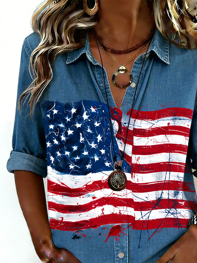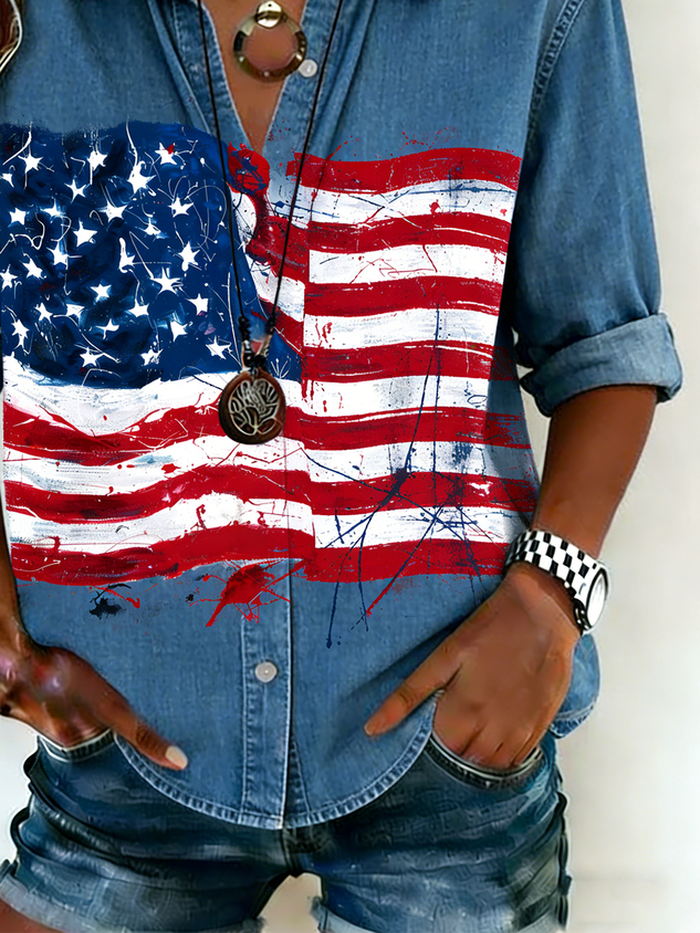 Faux Denim Print Graphic Casual Others Shirt
