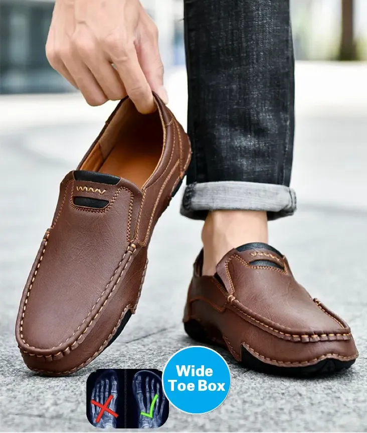 Wir stellen unsere Herren-Lofers mit einem breiten Zehenbox-Design vor, perfekt für diejenigen mit breiteren oder volleren Füßen. Diese Lofers bieten ausreichend Platz für deine Zehen und gewährleisten maximalen Komfort bei jedem Schritt. Erlebe die Freiheit der Bewegung und des Stils, ohne auf Komfort zu verzichten.