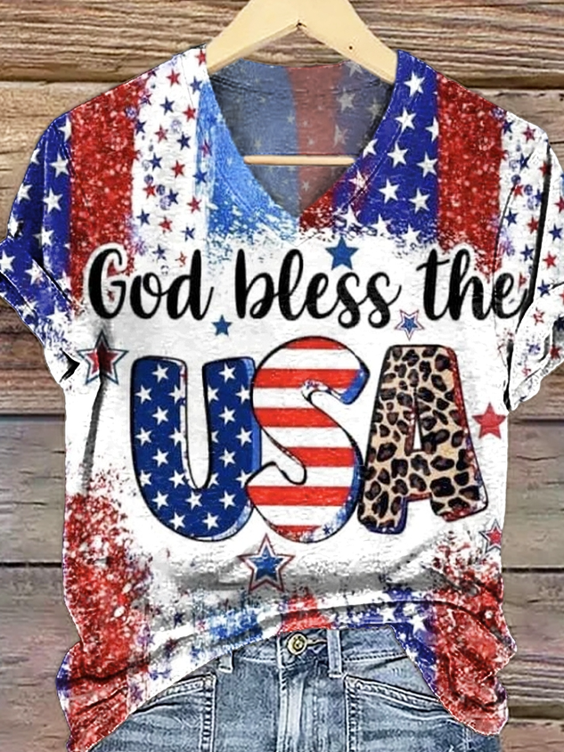 Women's Short Sleeve T-shirt Summer As Picture Independence Day (Flag) Printing V Neck Daily Going Out Casual Top