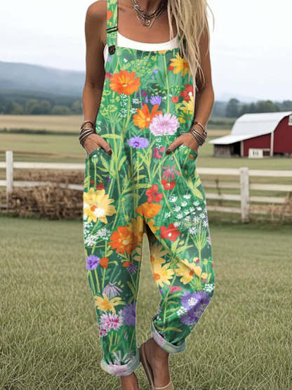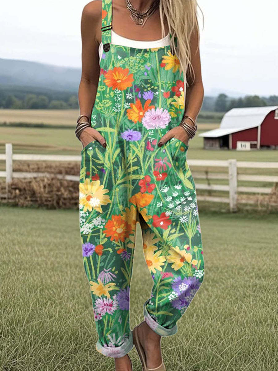 Women's Beautiful Colorful Flower Painting Art Print Casual Cotton + Polyester Wide Leg Jumpsuit