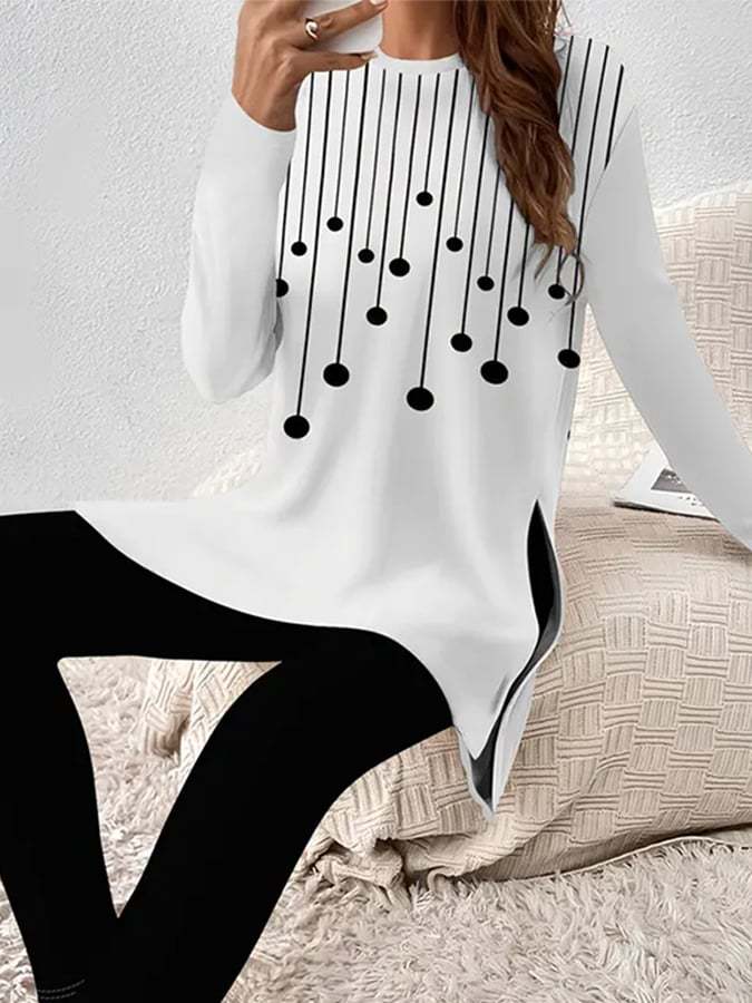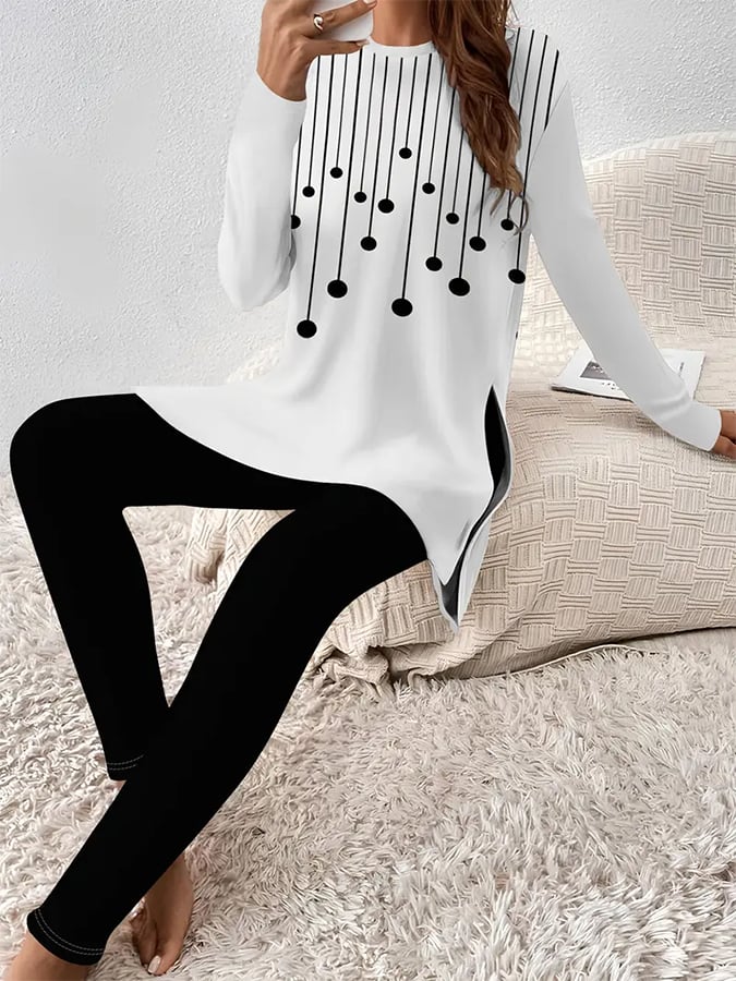 Women'S Casual Round Neck Abstract Stripe Pattern Long Sleeve Two-Piece Set