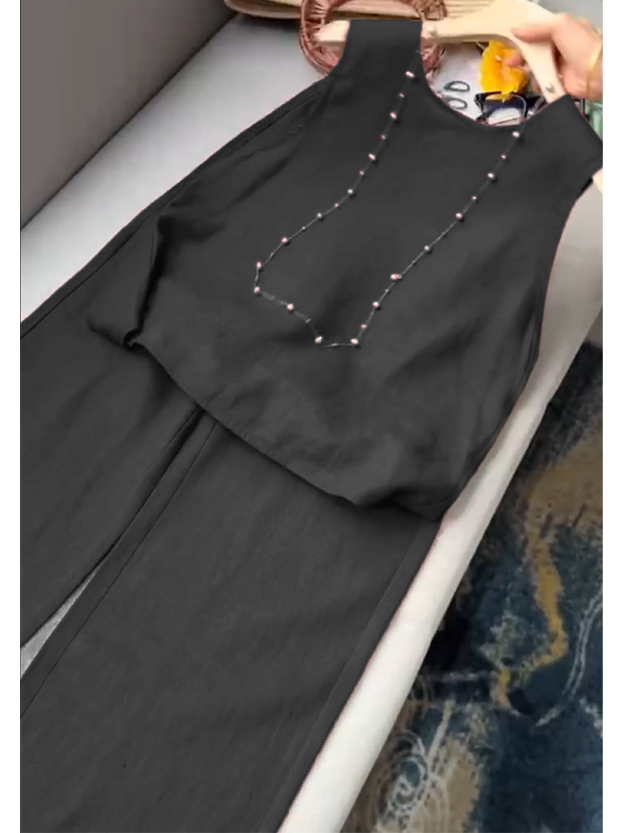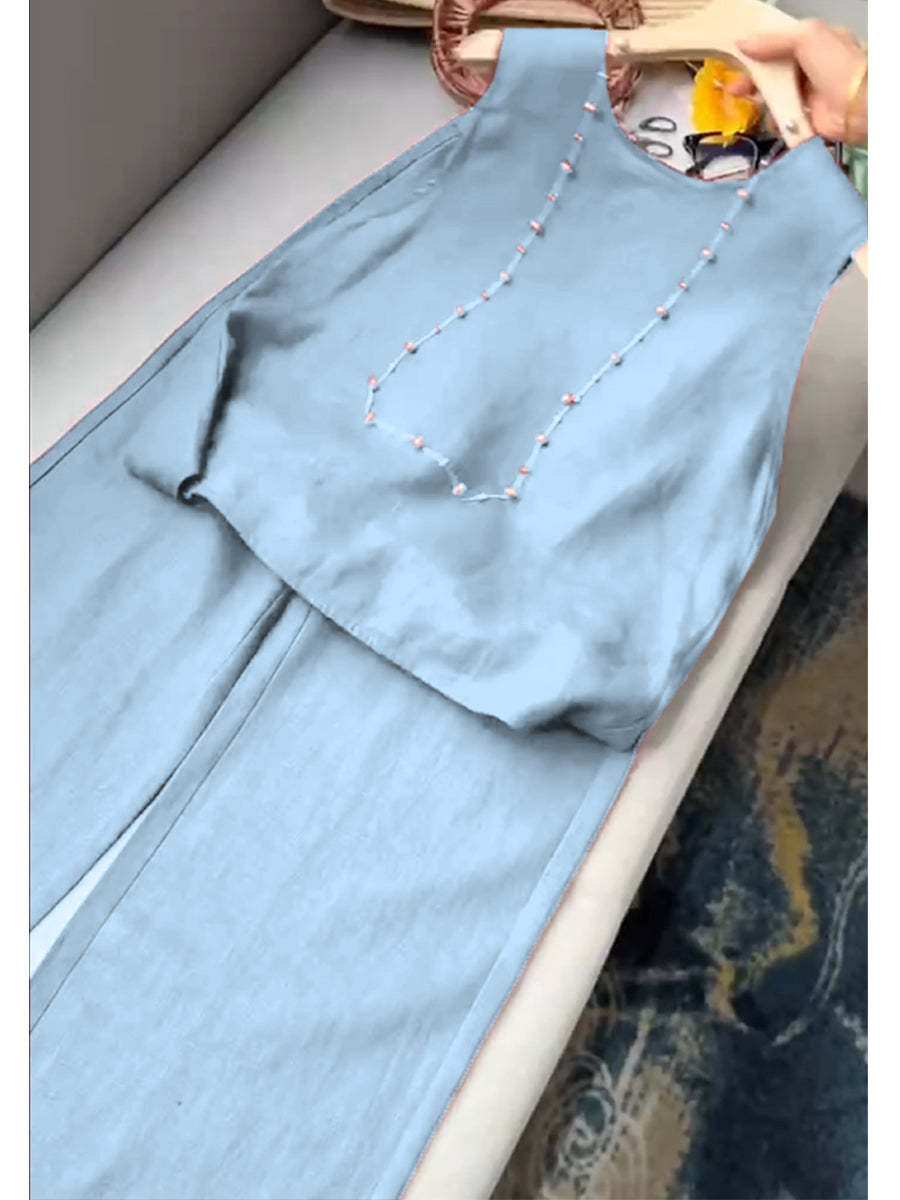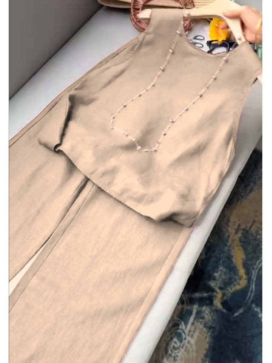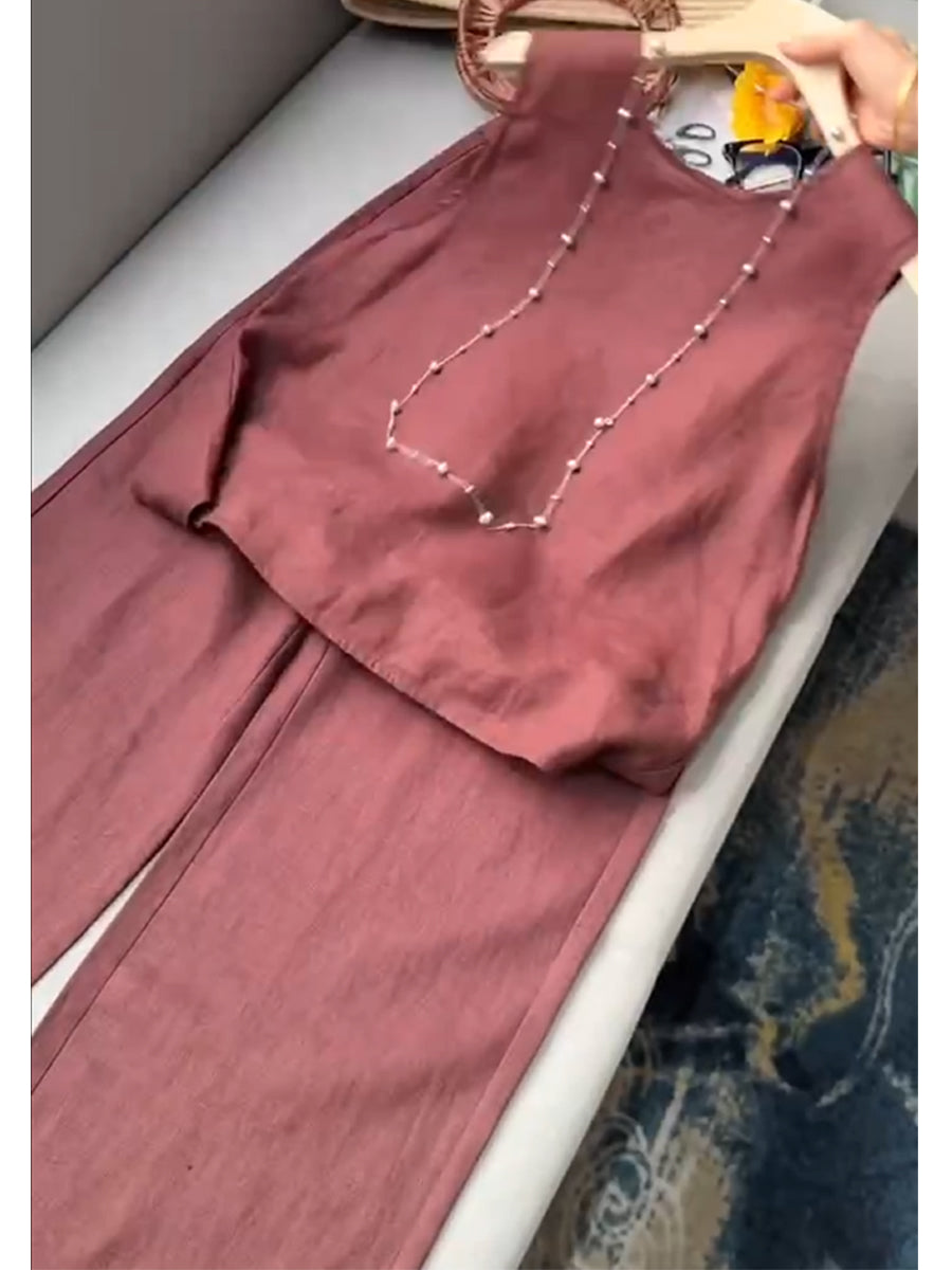 Women's Cotton And Linen Casual Vest and Pants Set