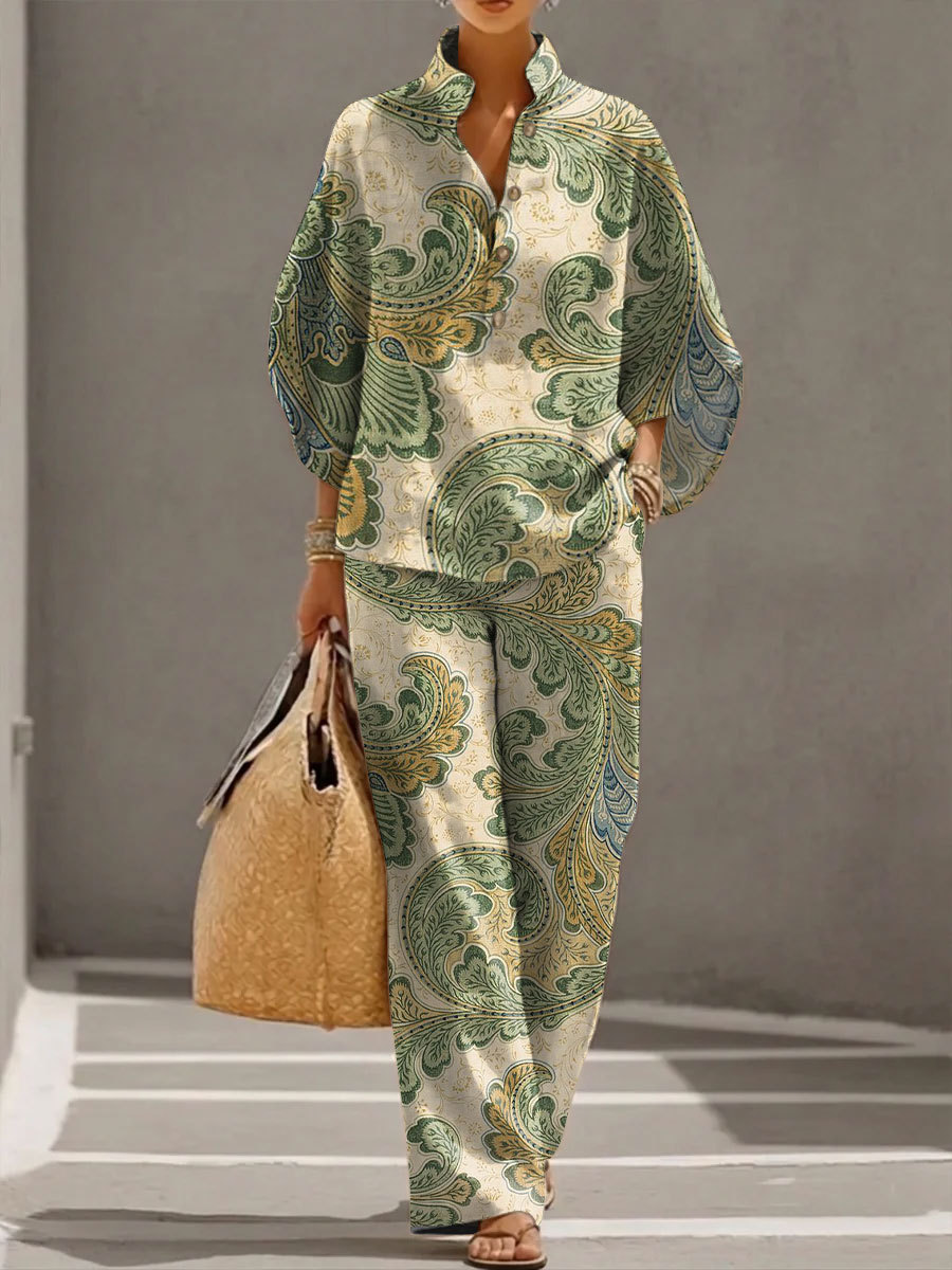 Women's Floral Print Casual Cotton-linen Two-piece Set