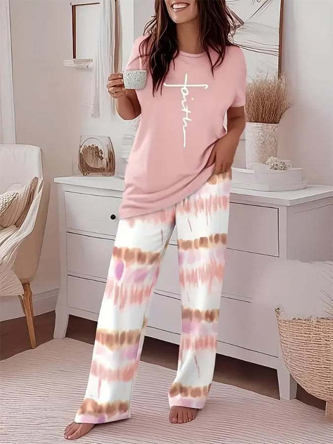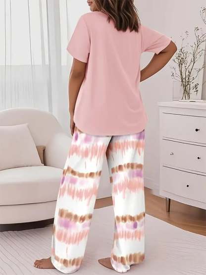 Women'S Round Neck Short Sleeve Casual Striped Print Pants Set