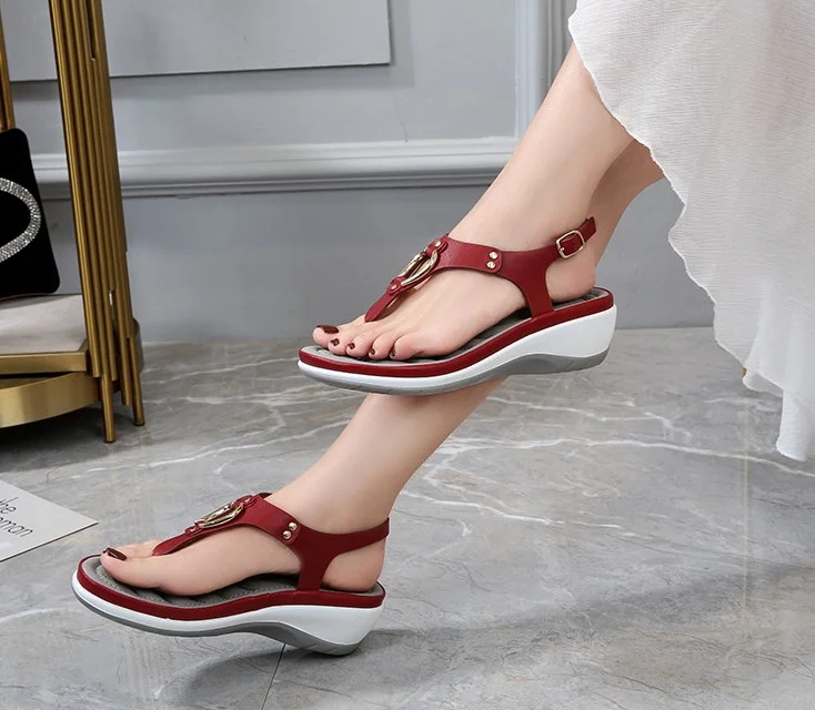 The cushion-like, double-padded memory foam insole is very soft. And the sandal is easy to combine.