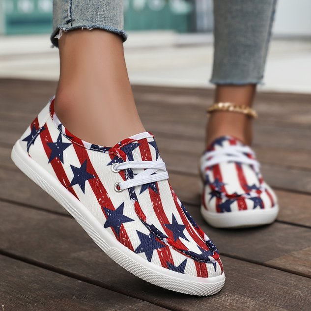 America Flag Canvas All Season Casual Shallow Shoes