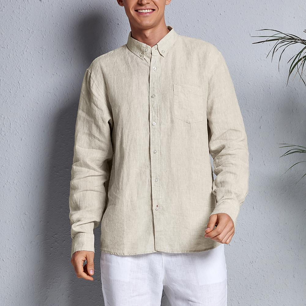Men's shirt autumn men's cotton linen shirt long sleeve lapel shirt