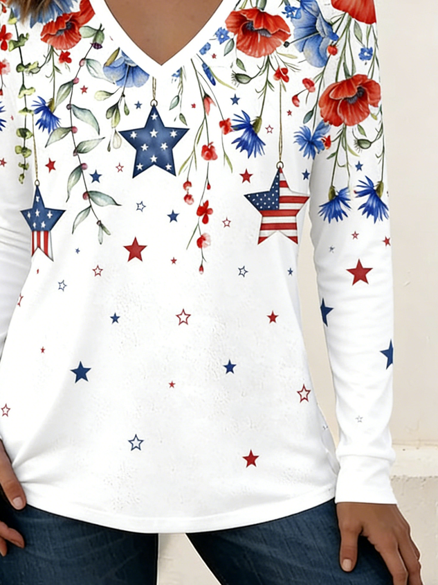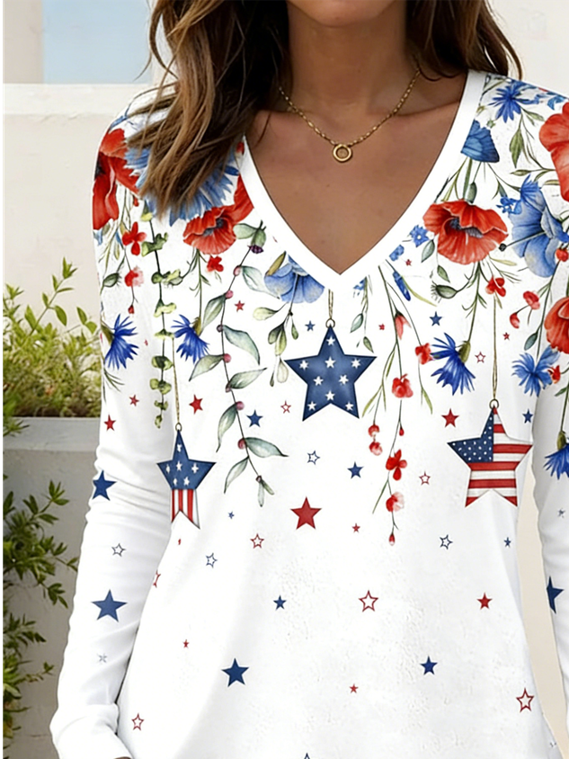 Women's Short Sleeve T-shirt Summer As Picture Independence Day (Flag) Printing V Neck Daily Going Out Casual Top
