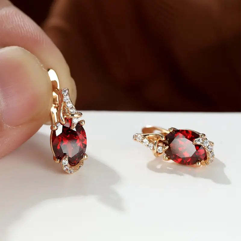 Crimson Twilight Drop Earrings | Gold