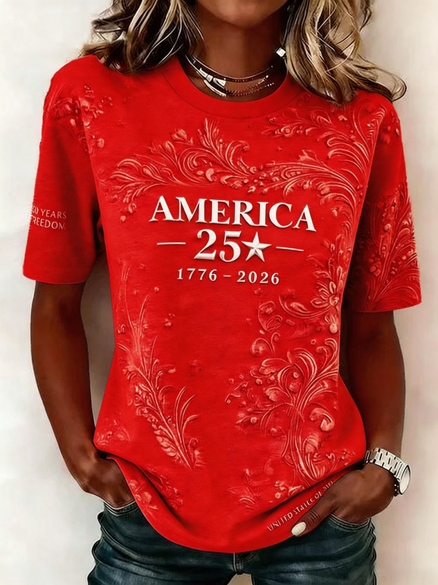 Women's 250th America Anniversary Casual Printed Crew Neck T-Shirt