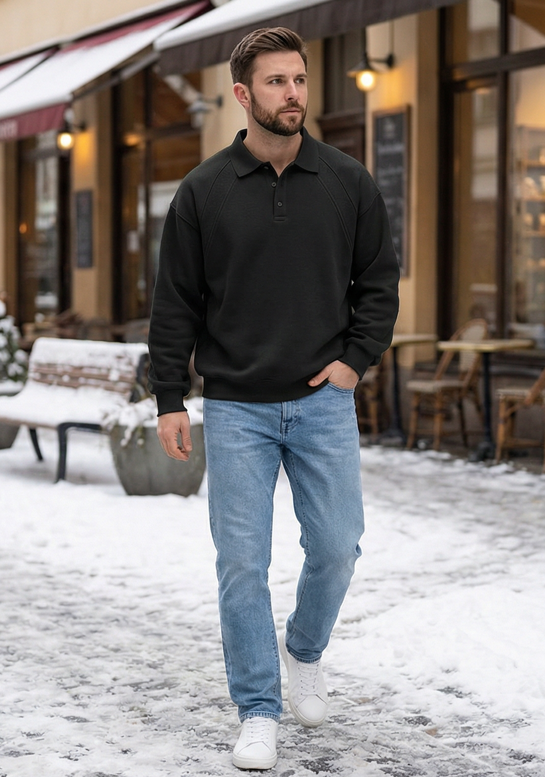✨Bestseller! ❄️Men's Simple Patchwork Lapel Button Long Sleeve Sweatshirt