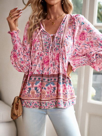 - Elegant Floral Pattern: The Blouse is decorated with a charming floral pattern that adds a sense of luxury and refined beauty to any outfit, perfect for both formal and informal occasions.