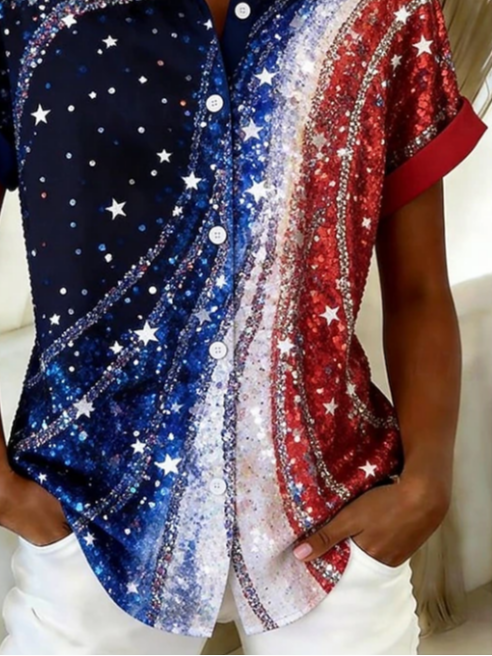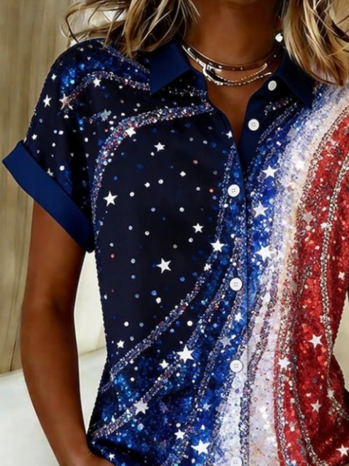 Women's Short Sleeve Shirt Summer As Picture Independence Day (Flag) Printing Shirt Collar Daily Going Out Casual Top