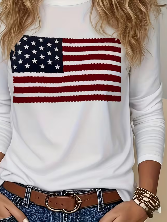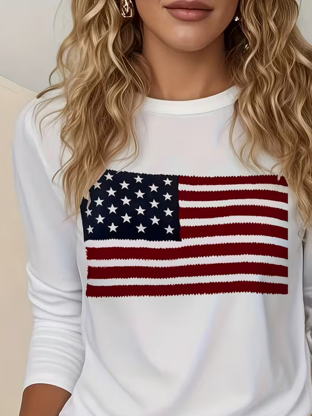 Women's USA 250th Anniversary Long Sleeve T-shirt Spring/Fall White America Flag Printing Jersey Crew Neck Daily Going Out Casual Top