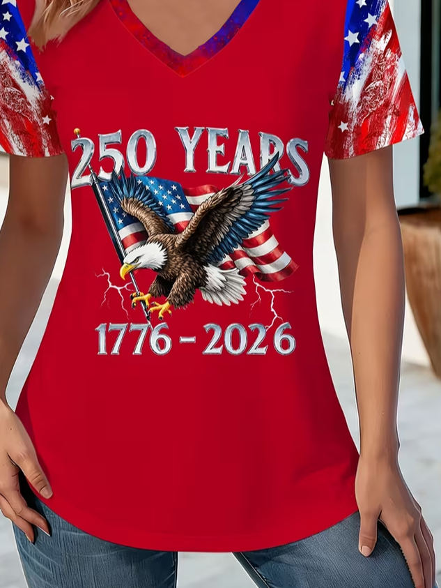 Women's American 250th Anniversary Commemorative Print Casual T-Shirt