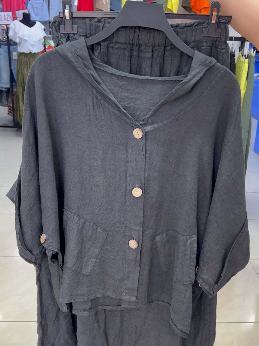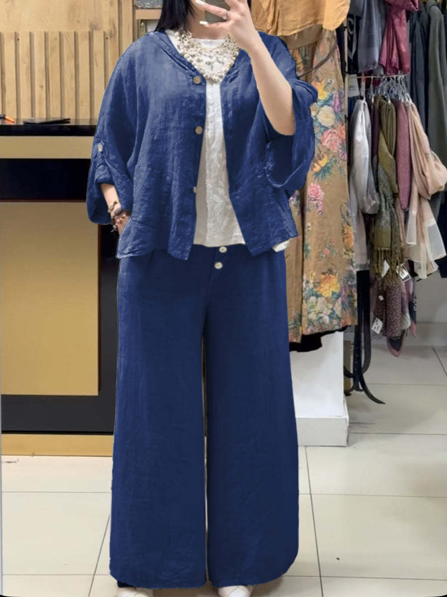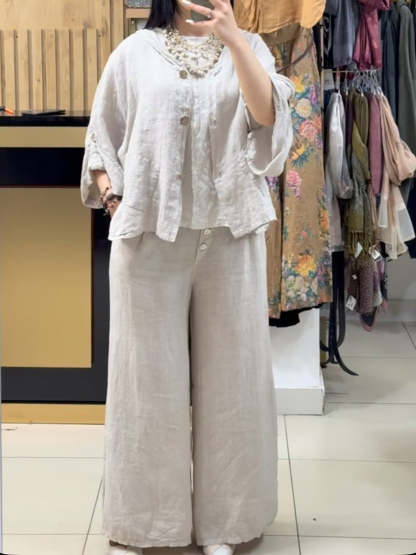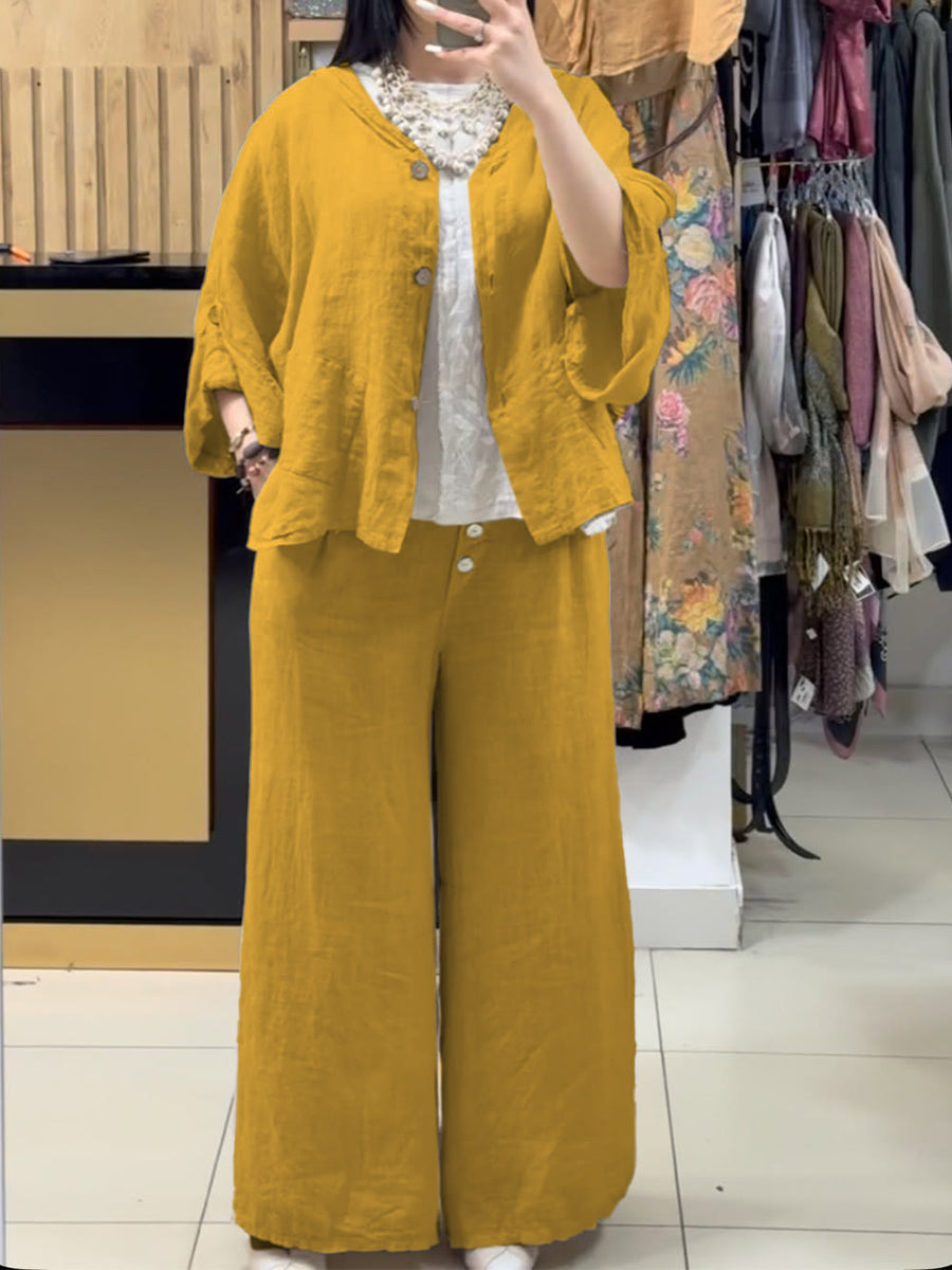 Plus Size Friendly Casual And Cozy Minimalist Linen Two-piece Set
