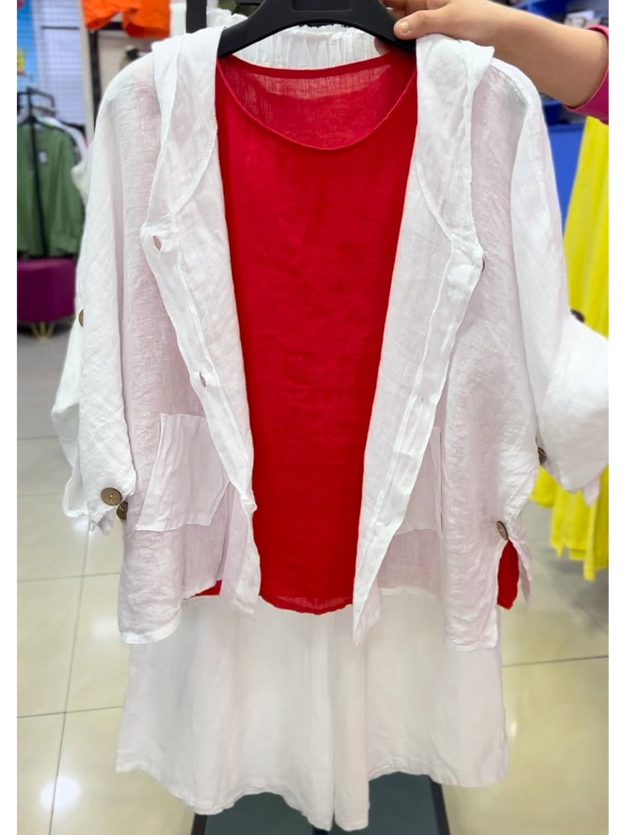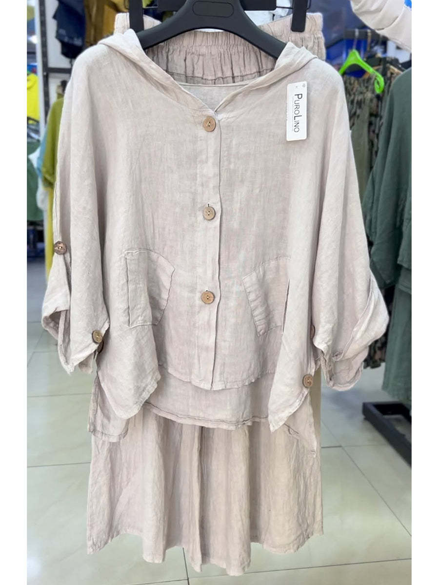 Plus Size Friendly Minimalist Linen-cotton Three-piece Set - Comfortable For Everyday Wear