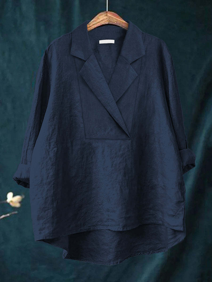 Women's Casual Cotton And Linen Suit Collar Shirt
