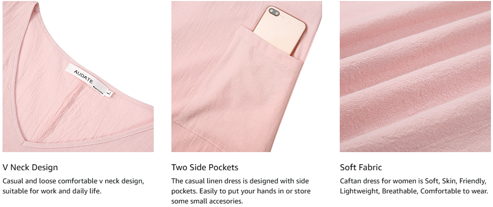 - FAETURES: The linen cotton kaftan dress features with solid color, side pockets, short sleeve, v neck, our women's casual cotton summer/fall maxi dress is a must-have kaftan dress in your wardrobe.