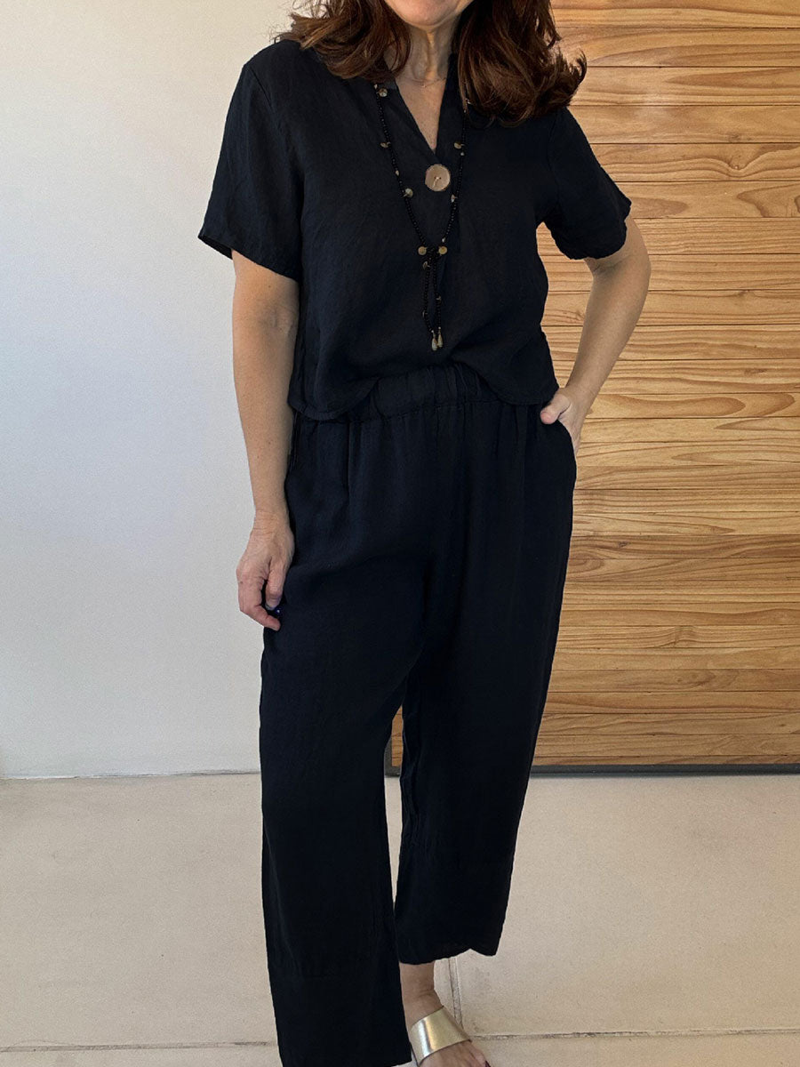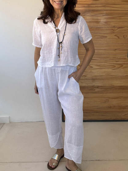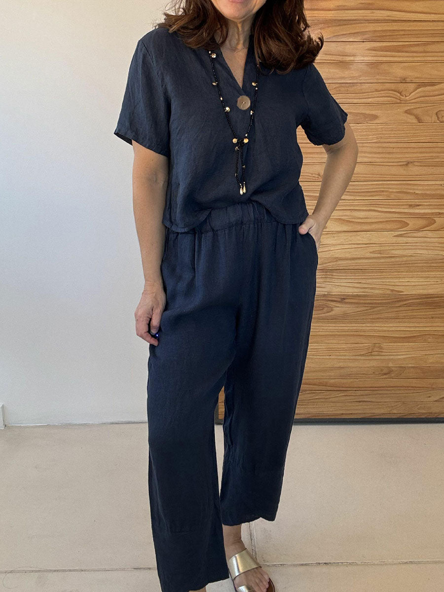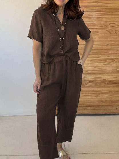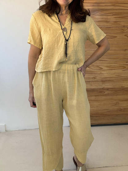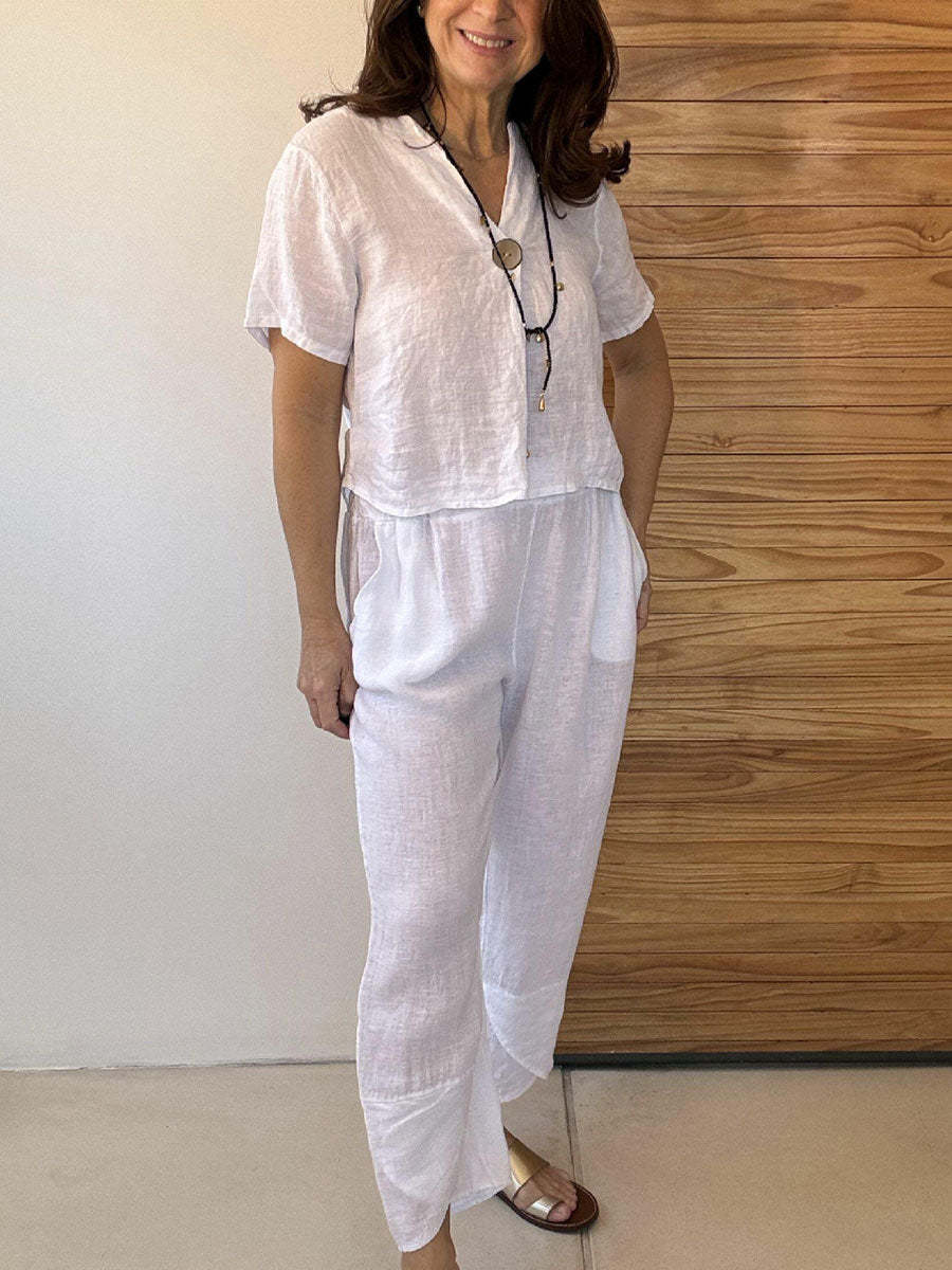 Plus Size Friendly Casual And Cozy Minimalist Linen Two-piece Set