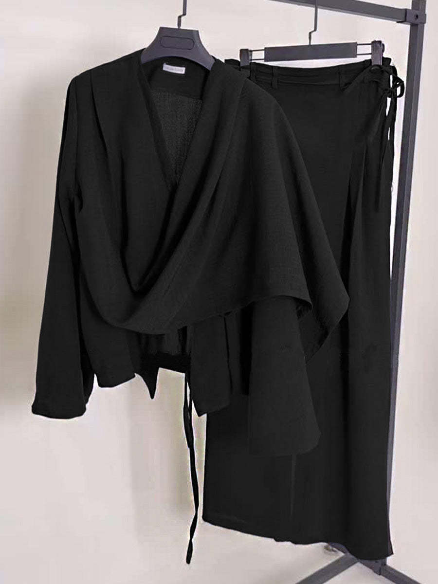 Plus Size Friendly Minimalist Linen-cotton Three-piece Set - Comfortable For Everyday Wear