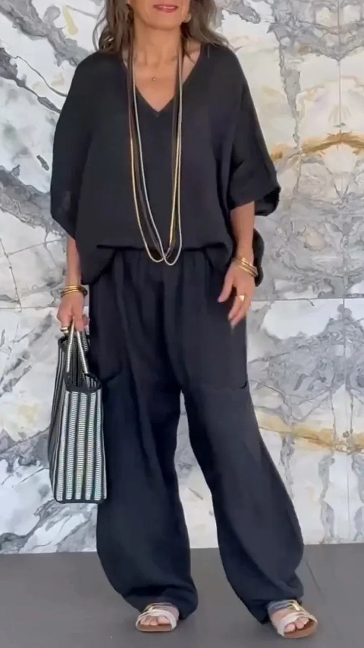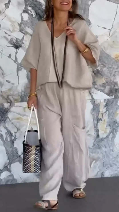 Plus Size Friendly Casual And Cozy Minimalist Linen Two-piece Set