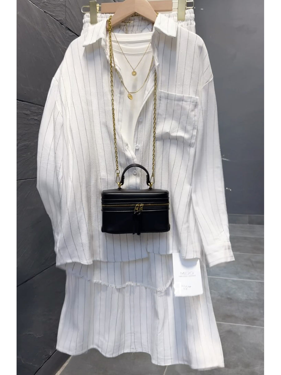 Women's Striped Cotton and Linen Shirt and Skirt Set