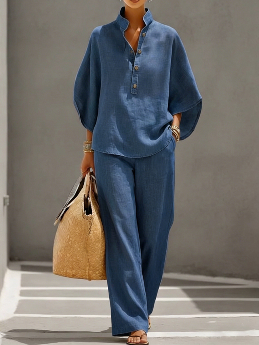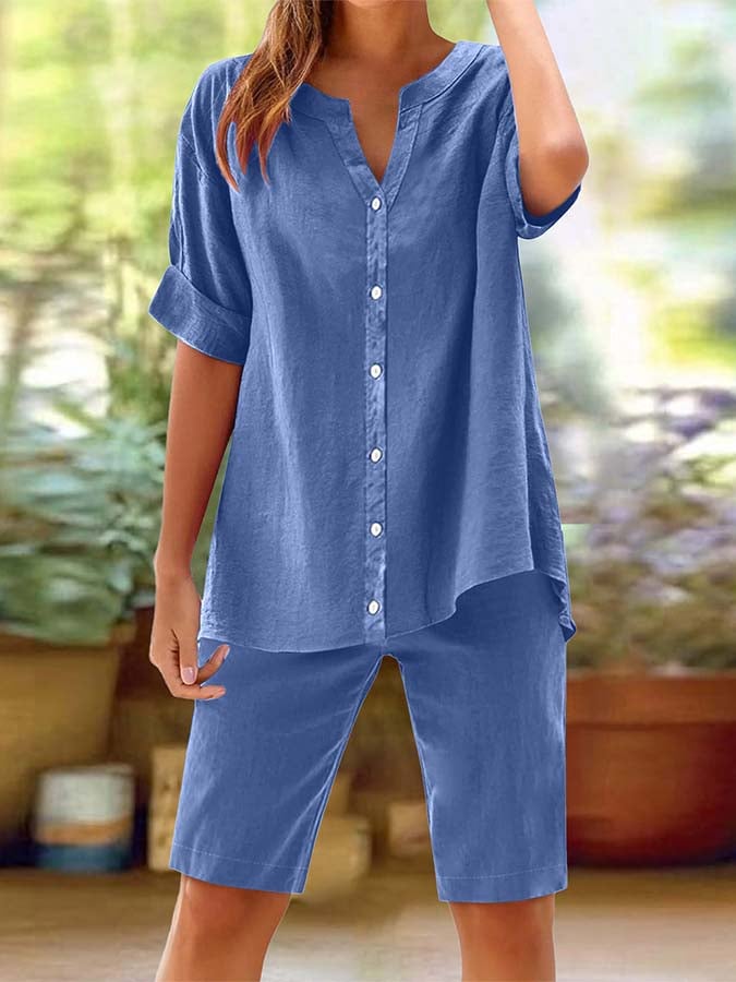 Women's Cotton and Linen Shirt and Pants Set