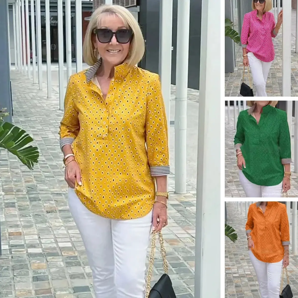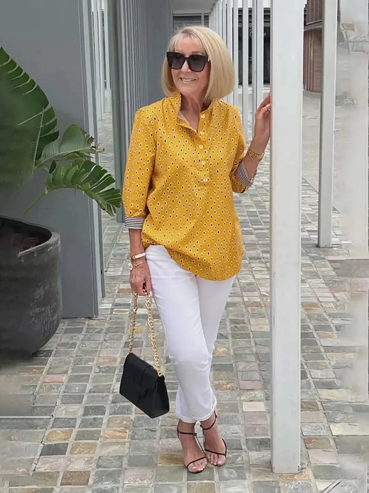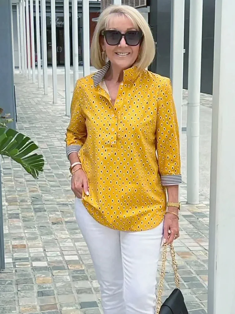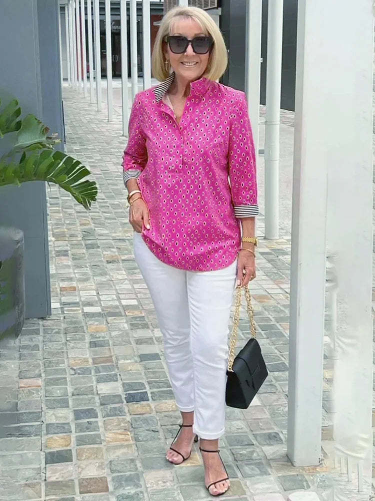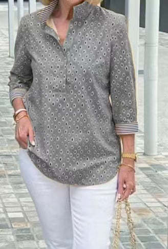 🌈【🔥Best Sellers-49% OFF】3/4 sleeve shirt with printed stand-up collar