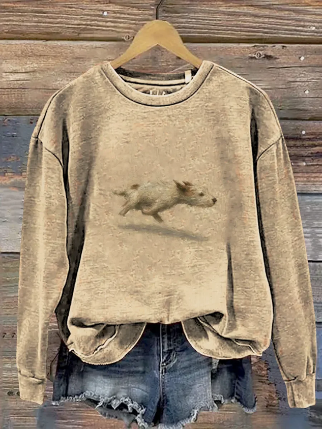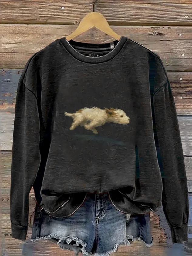 Funny Cute Running Dog Art Print Casual Sweatshirt