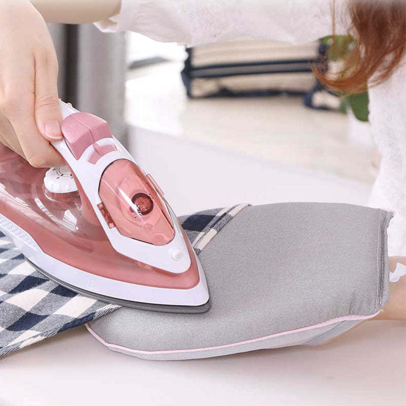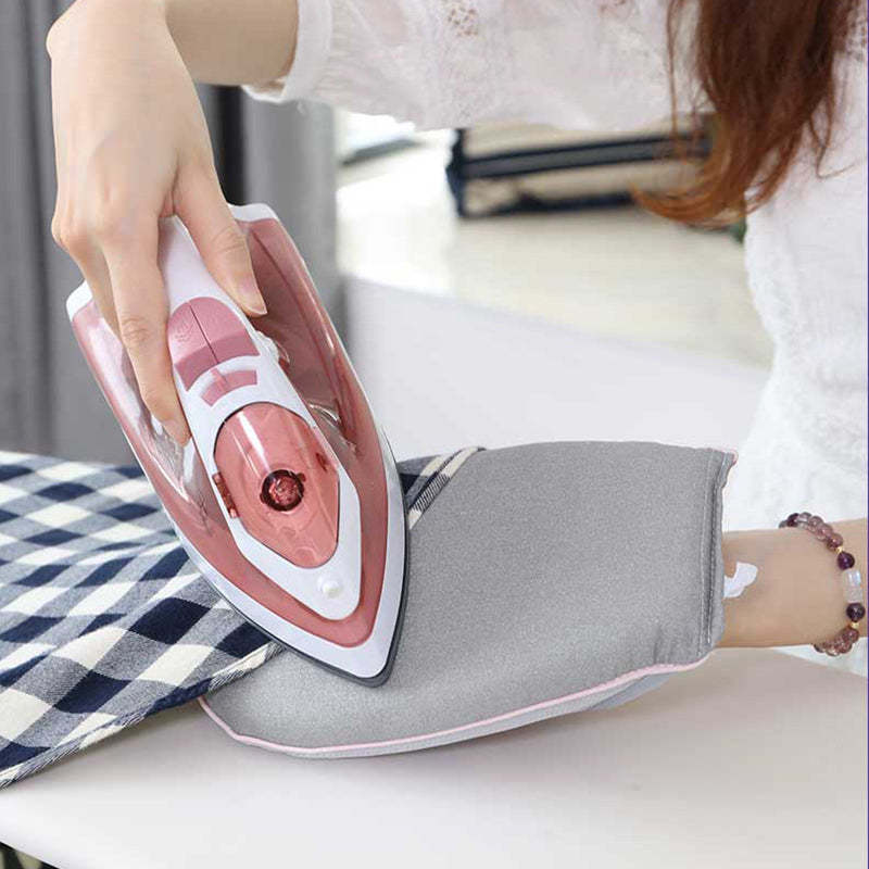 HAND IRONING BOARD: Built-in ring, easy to use. Helps to gently iron shirts, coats, jackets, T-shirts, and more.