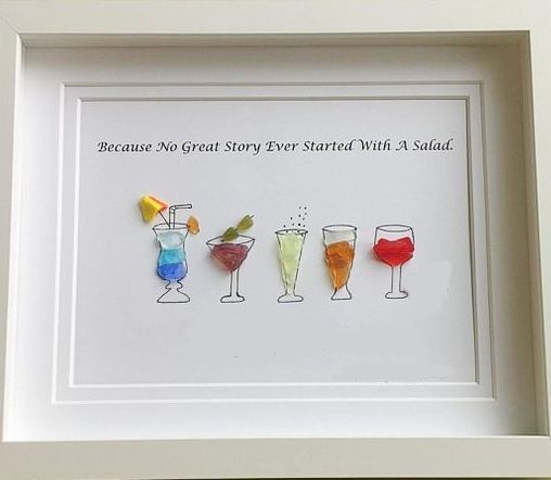 Featuring Sea Glass Cocktails and a funny quote, each piece is handcrafted with unique sea glass, adding a touch of coastal charm to your decor.
