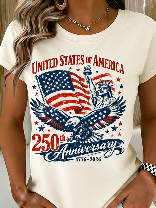 Independence Day Casual Cotton Crew Neck T-Shirt