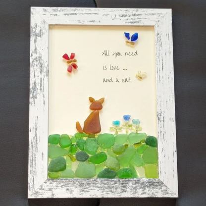 Sea Glass Art, All You Need Is Love And A Cat, Unique Gift for Cat Lovers