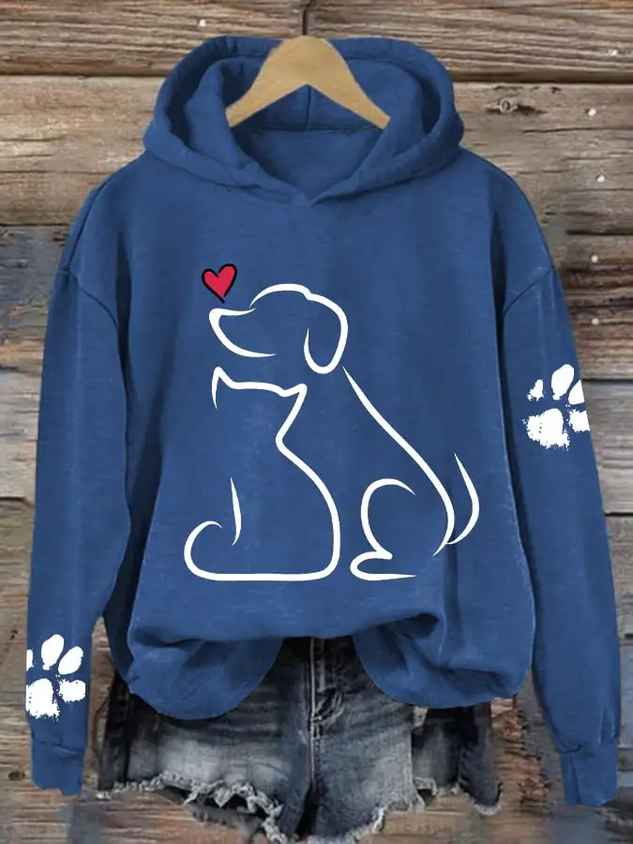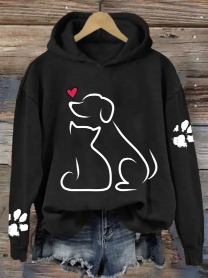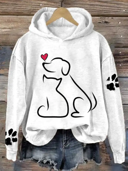Women's Dog And Love Valentine's Day Loose Casual Hoodie