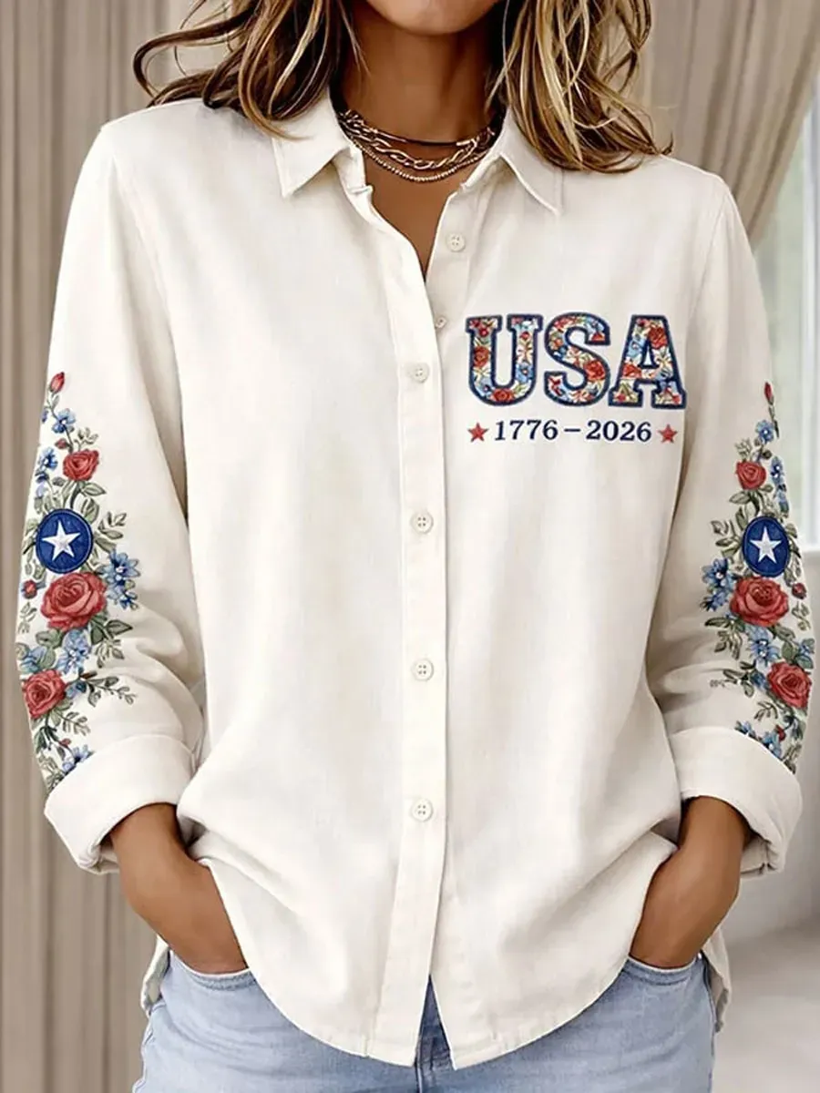Women'S Casual American 250Th Anniversary Commemorative Printed Shirt