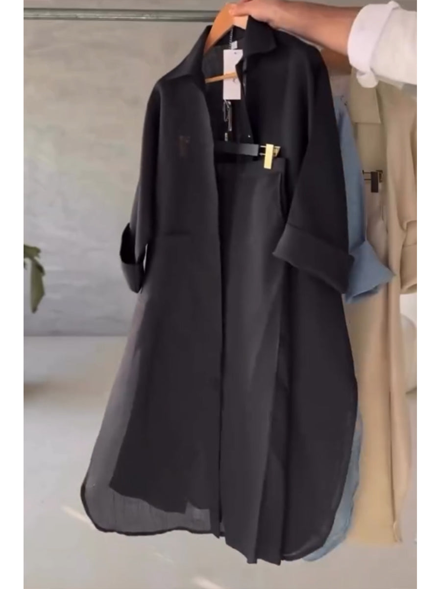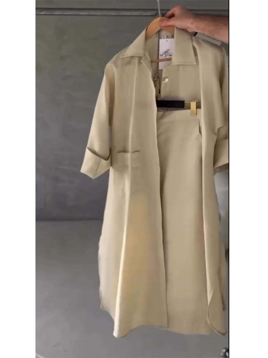 Plus Size Friendly Minimalist Linen-cotton Three-piece Set - Comfortable For Everyday Wear