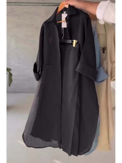NEW🔥 Long Sleeve Striped Lapel Button Down Dress
