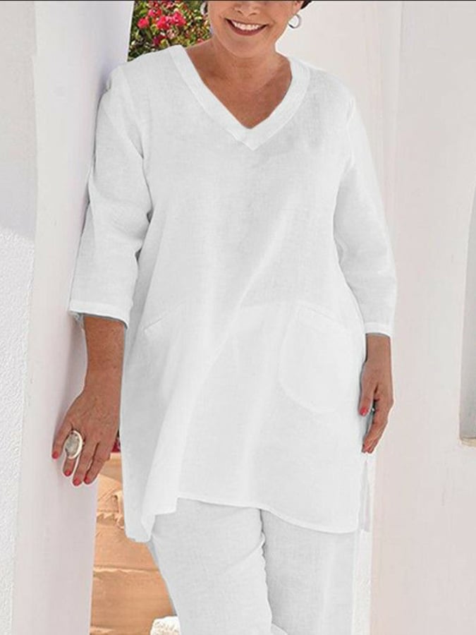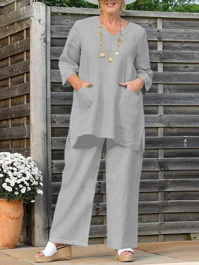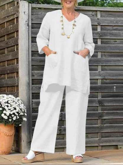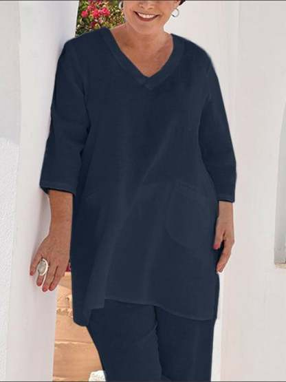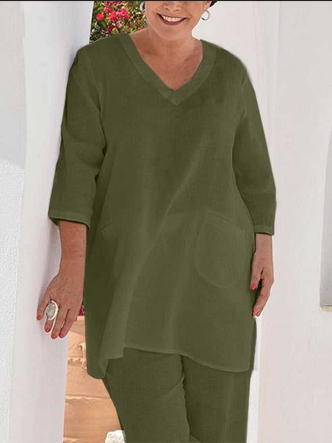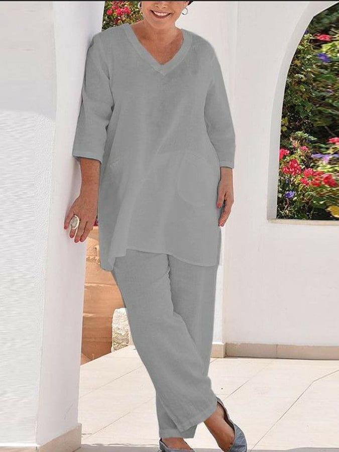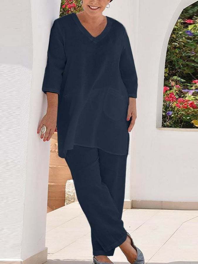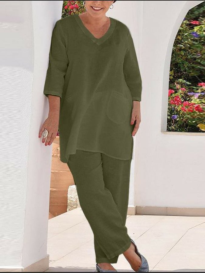 Plus Size Friendly Casual And Cozy Minimalist Linen Two-piece Set