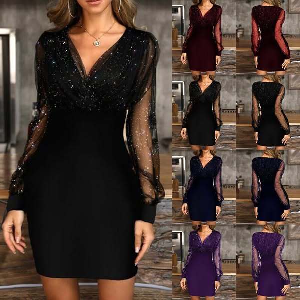 Package Includes:1*Women’s Mesh Sequin Long Sleeve Bodycon Dress