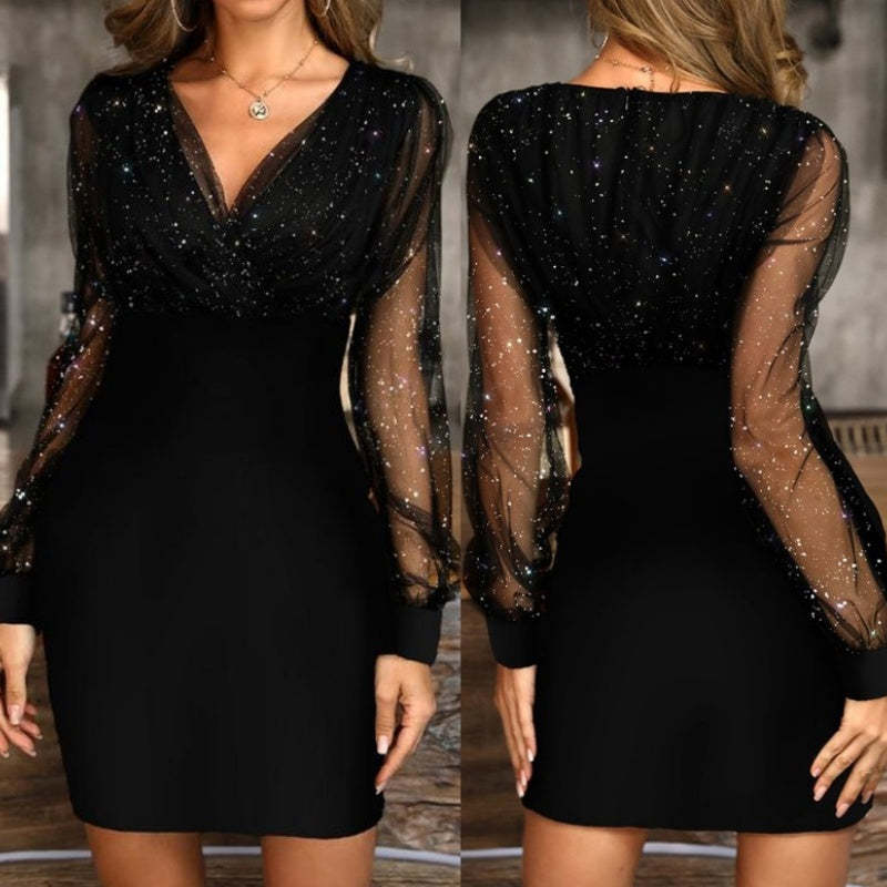 💃Last Day Sales - 49% OFF🎉Women’s Mesh Sequin Long Sleeve Bodycon Dress